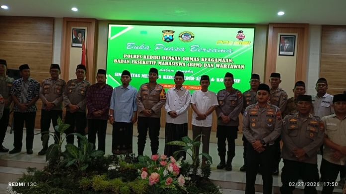 LDII Kediri,(28/02). Polres Kediri menggelar buka puasa bersama dengan berbagai elemen masyarakat pada Jumat, 27 Februari 2026, di Aula Wicaksana Laghawa Mapolres Kediri. Kegiatan tersebut mengusung tema “Sinergitas Polres Kediri dengan Elemen Masyarakat dalam Menjaga Kediri Lebih Aman dan Kondusif.”
