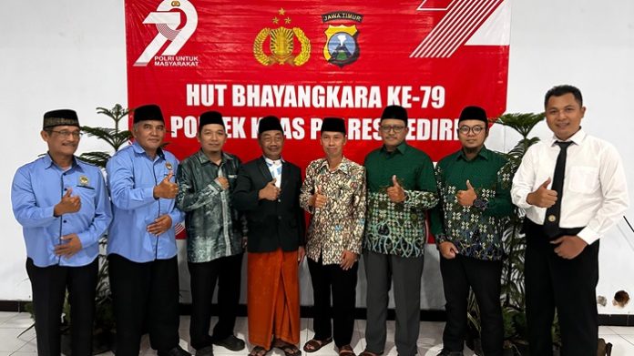 LDII Kediri, (6/7). Pengurus Cabang Lembaga Dakwah Islam Indonesia (PC LDII) Kecamatan Kras menghadiri peringatan Hari Ulang Tahun (HUT) Bhayangkara ke-79 dan acara kenal pamit Kapolsek Kras Polres Kediri di Gedung REKOLA, Pabrik Gula Ngadirejo, Kecamatan Kras, Kabupaten Kediri.